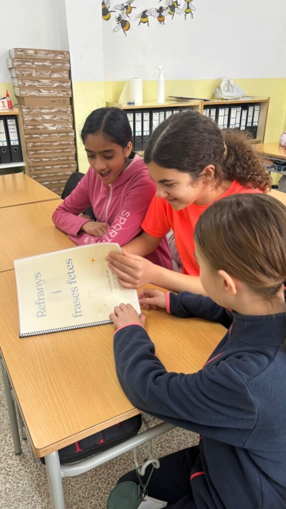 Durant el primer trimestre l’alumnat ha participat en un projecte creatiu al voltant dels refranys i les frases fetes de la nostra llengua. Cada alumne/a ha seleccionat una expressió i l’ha representada visualment utilitzant Canva, treballant així la comprensió del significat i la seva interpretació gràfica. Posteriorment, s’ha dinamitzat l’activitat amb un petit joc d’endevinalles per compartir les creacions i fomentar l’observació i la reflexió conjunta. Per tancar el projecte, totes les aportacions s’han recopilat en un llibre col·lectiu que recull aquest treball cooperatiu.