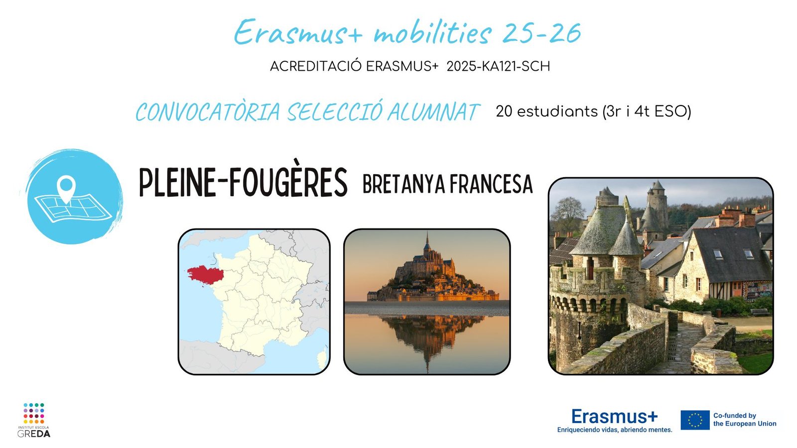 El nostre centre obre el període de selecció per participar en les mobilitats Erasmus+ del curs 2025-2026 per l’alumnat de 3r i 4t d’ESO. Projecte