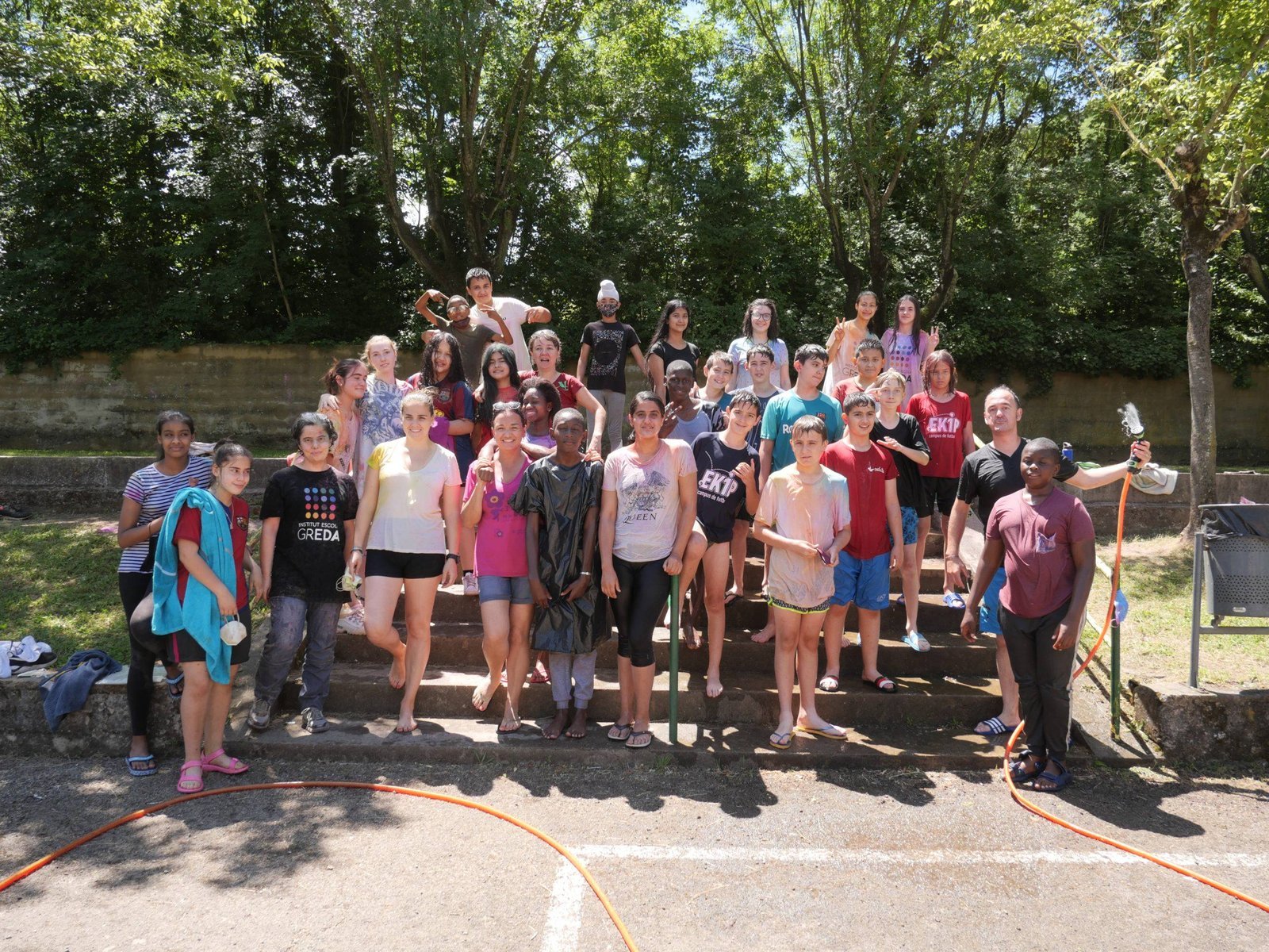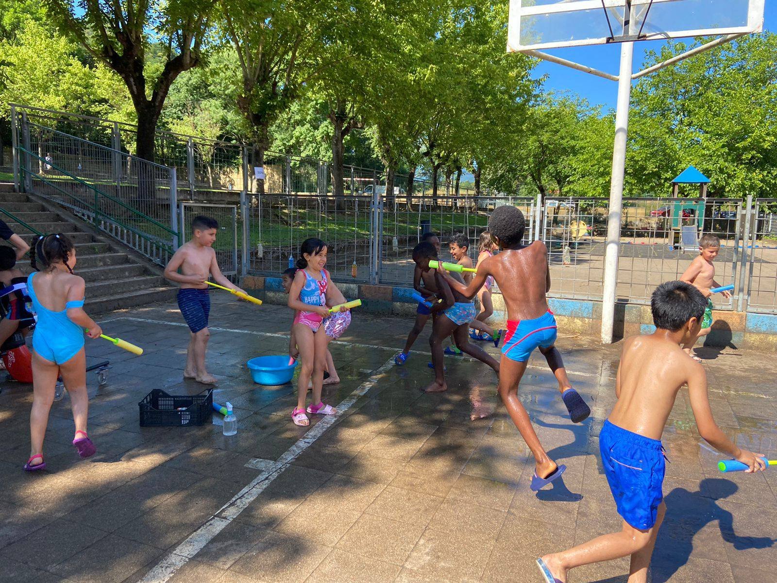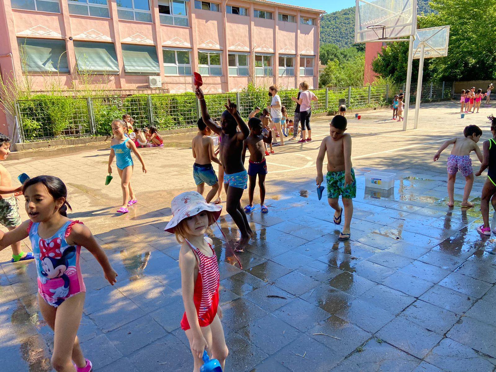 El dia va començar amb diferents activitats a les aules i de mica en mica es va anar omplint el pati amb tota classe de jocs pels diferents grups. Paral·lelament es van realitzar alguns partits de futbol i de bàsquet, inclosos els d’alumnes contra professors i professores. També es van realitzar tota mena de refrescants activitats d’aigua.