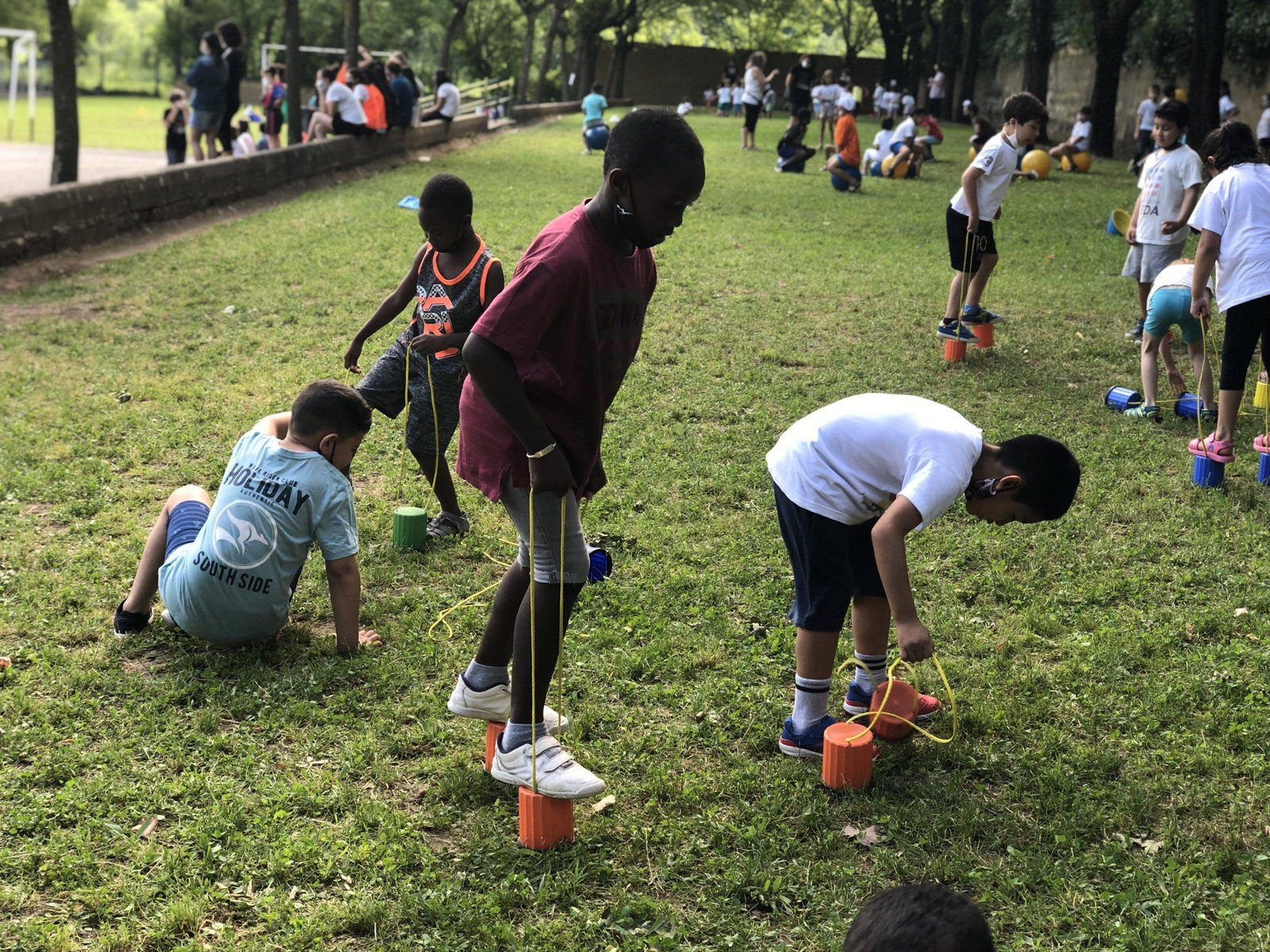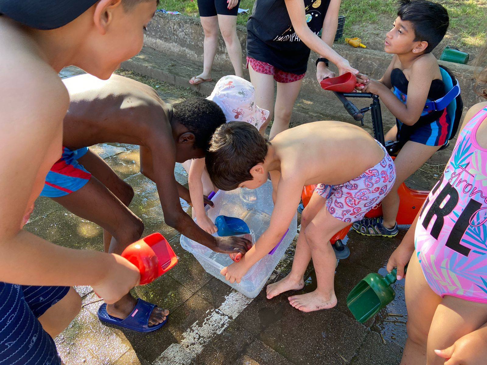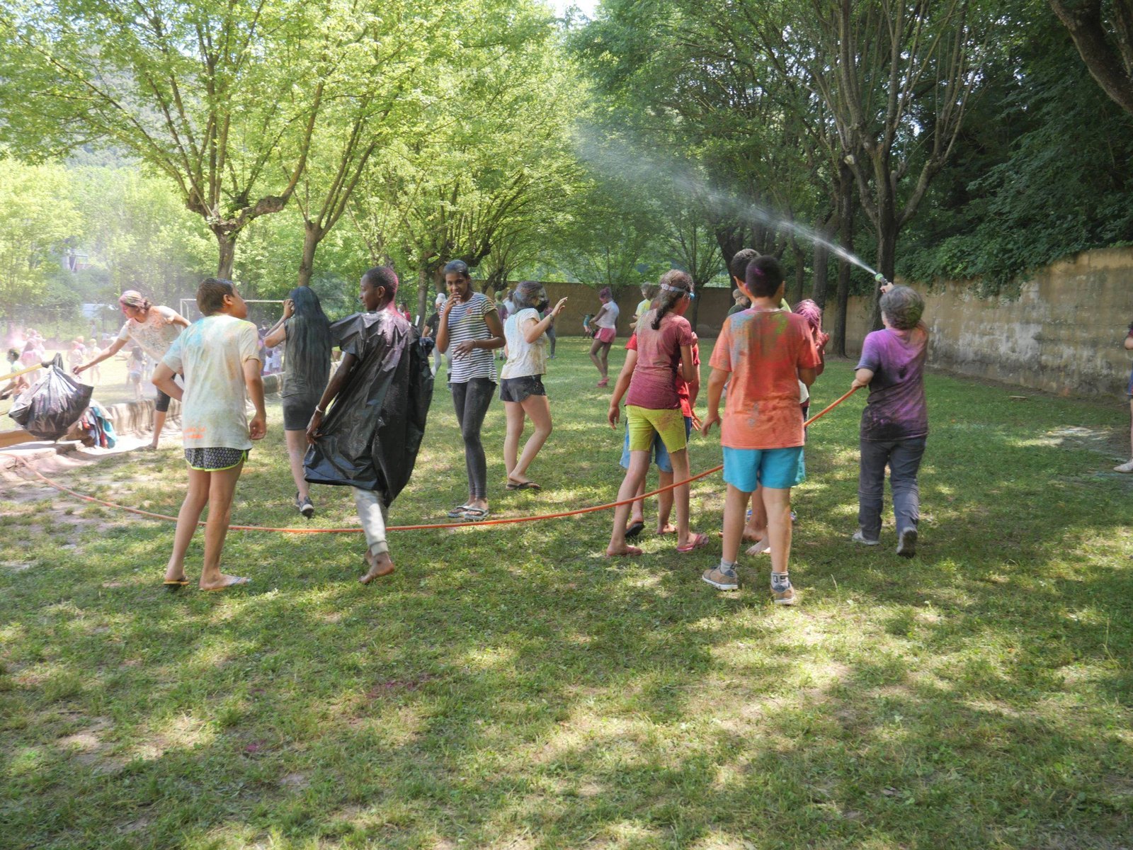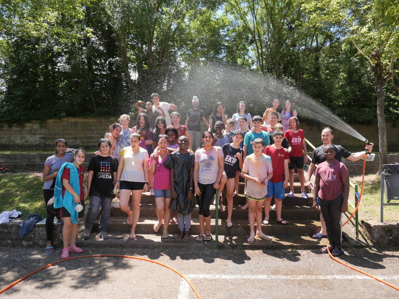 El dia va començar amb diferents activitats a les aules i de mica en mica es va anar omplint el pati amb tota classe de jocs pels diferents grups. Paral·lelament es van realitzar alguns partits de futbol i de bàsquet, inclosos els d’alumnes contra professors i professores. També es van realitzar tota mena de refrescants activitats d’aigua.